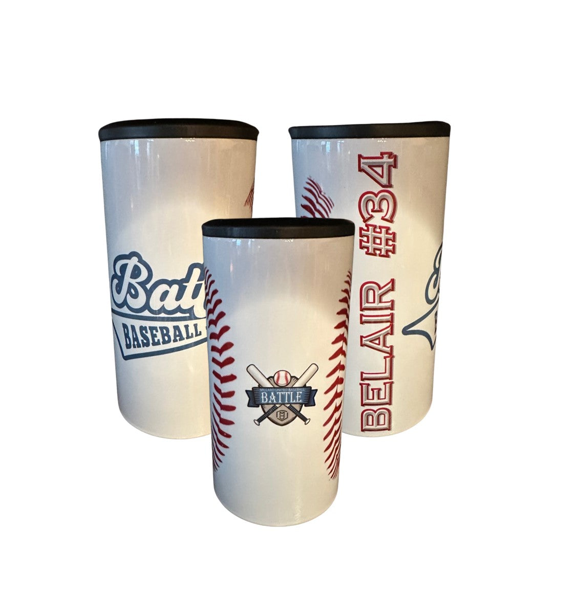 Holds bottles, regular and skinny cans, and can be used as a tumbler! Indicate Player last name and number in the notes at checkout.
